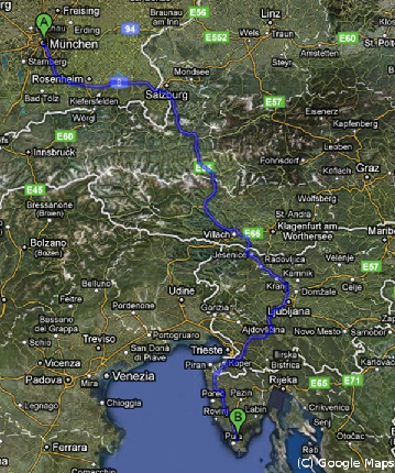 München-Salzburg-Villach-Ljubljana-Koper-Pula-Liznjan